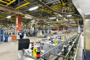 Interieur und Maschinen in einer Großdruckerei – moderne Maschi Geschrieben von Martina Arnegger, 13. Februar 2023 -